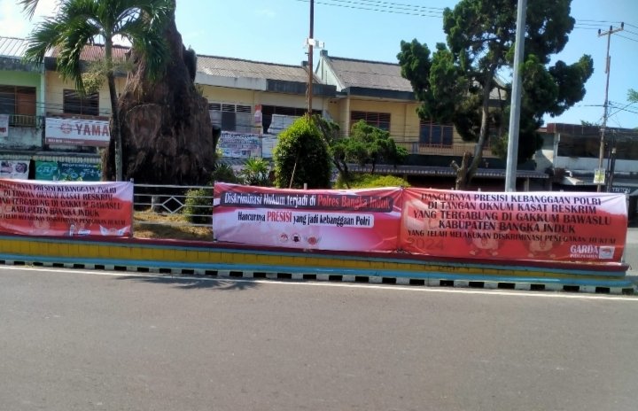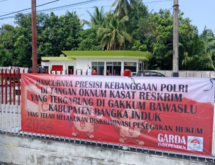 Bahkan sejumlah spanduk yang telah terpasang di sejumlah titik wilayah Kota Sungailiat justru mengundang perhatian para pengguna jalan lantaran kalimat yang tertera di spanduk terkesan menyindir oknum perwira Polri (Kasat Reskrim). Antara lain terpantau oleh tim media ini di lapangan, Rabu (24/7/2024) siang terdapat spanduk bertuliskan ‘Hancurnya Presisi Kebanggaan Polri Di Tangan Oknum Kasat Reskrim Polres Bangka Yang Tergabung Dalam Tim Gakkum Bawaslu Kabupaten Bangka Induk’.